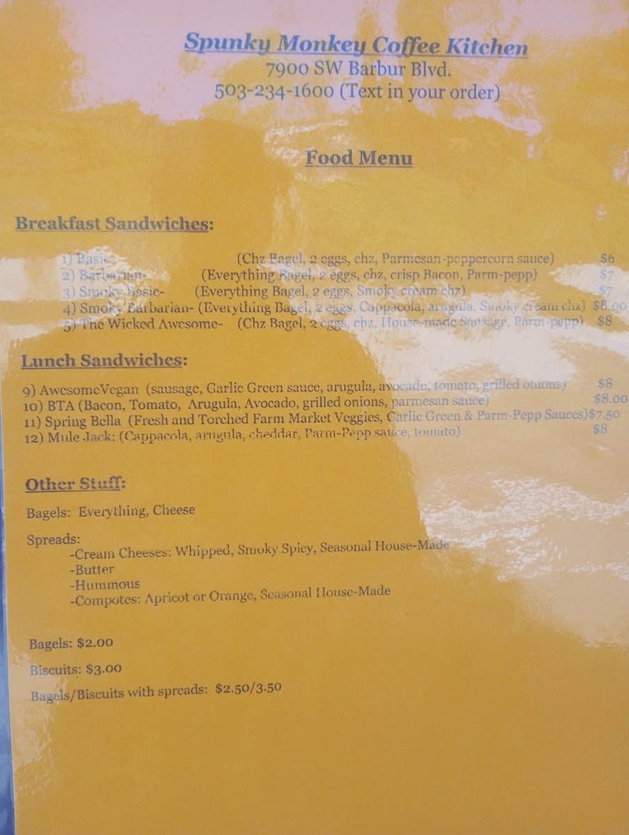 Welcome to Spunky Monkey Coffee Kitchen, an adorable cafe nestled at 7900 SW Barbur Blvd, Portland, OR. Known for its quirky charm, this spot serves up a delightful menu that captivates coffee and breakfast lovers alike.