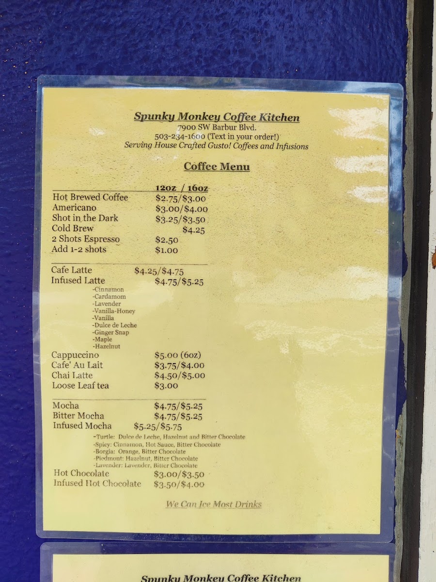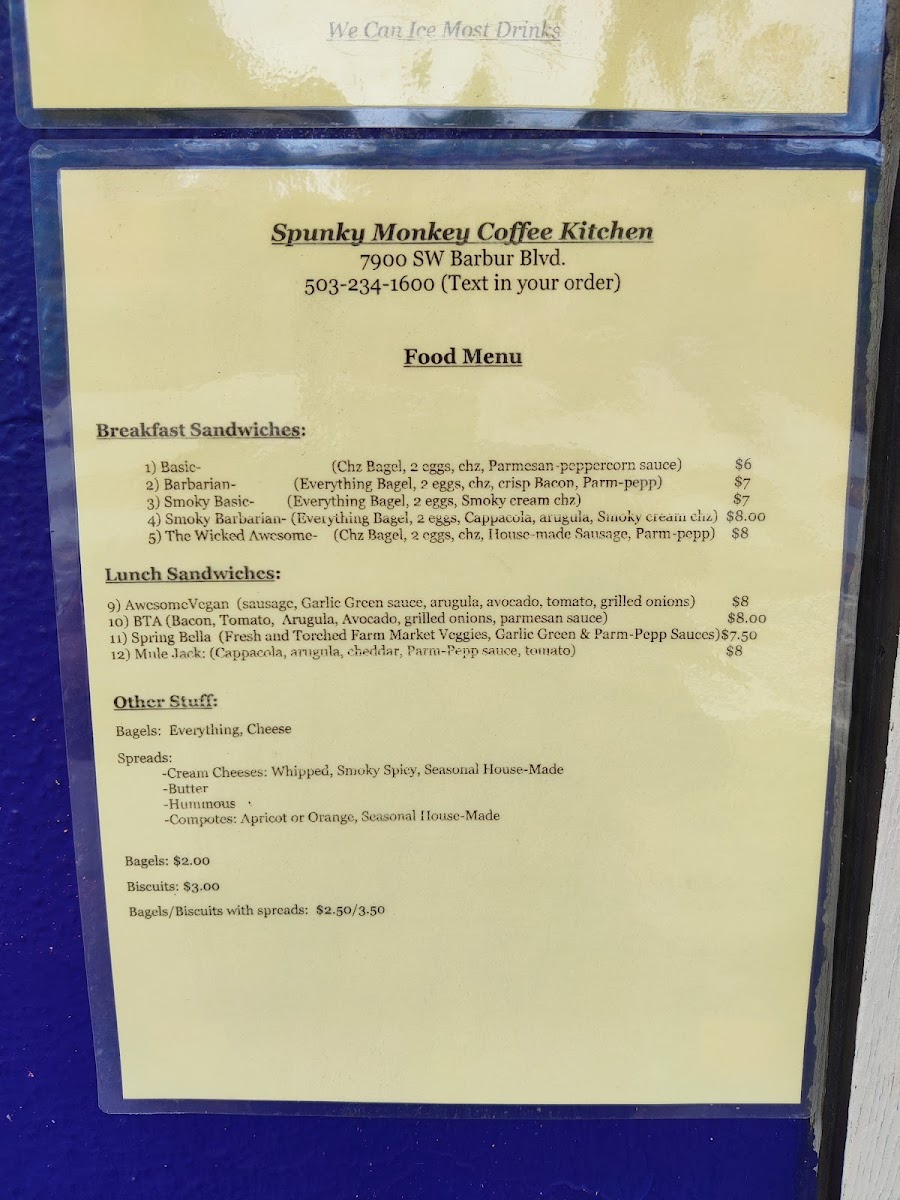 Spunky Monkey Coffee Kitchen Menu